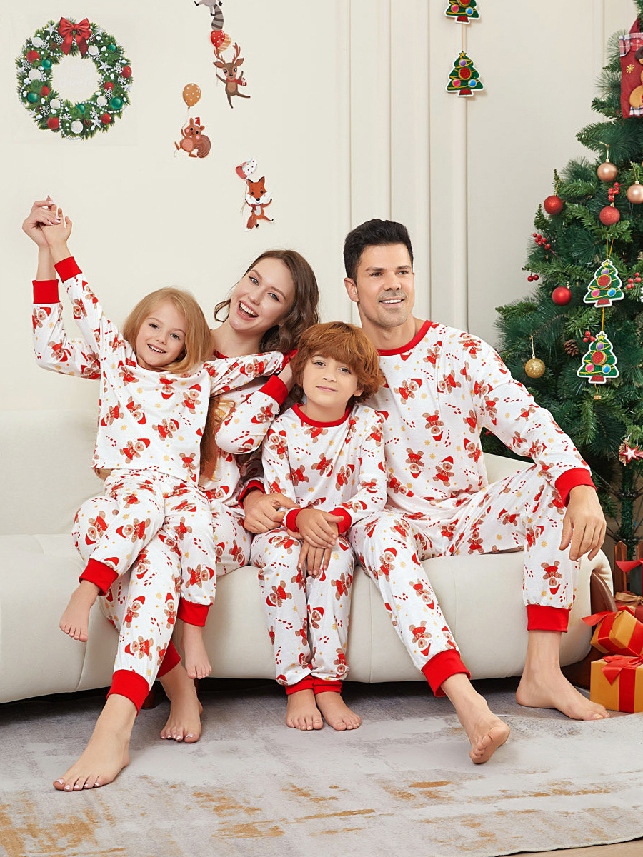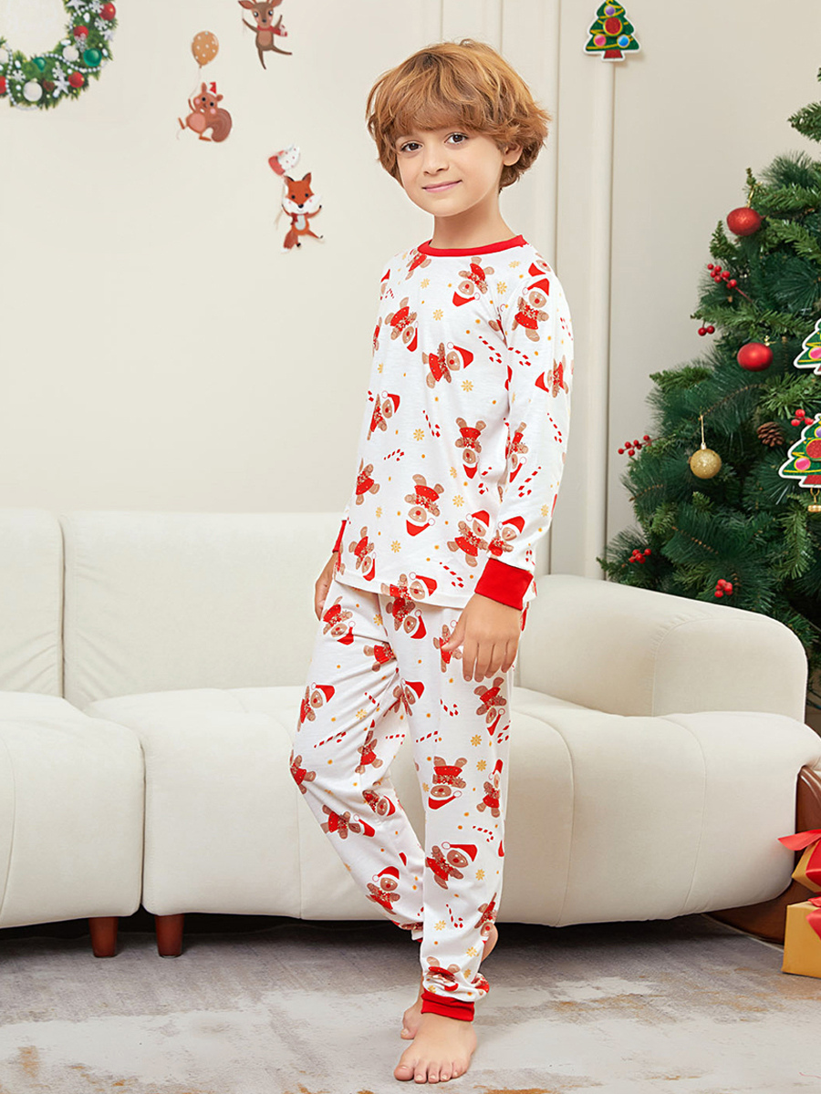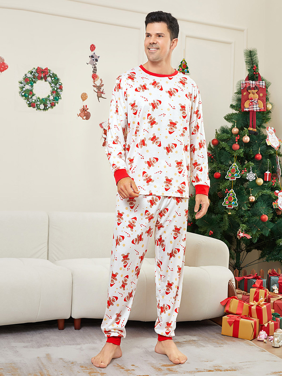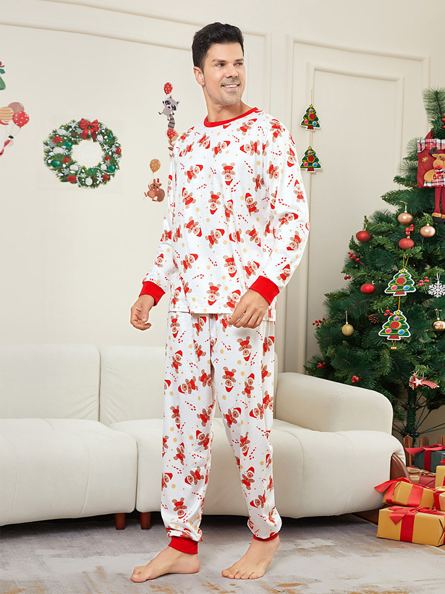 白と赤のジンジャーブレッドマン柄ファミリークリスマスパジャマ 2025