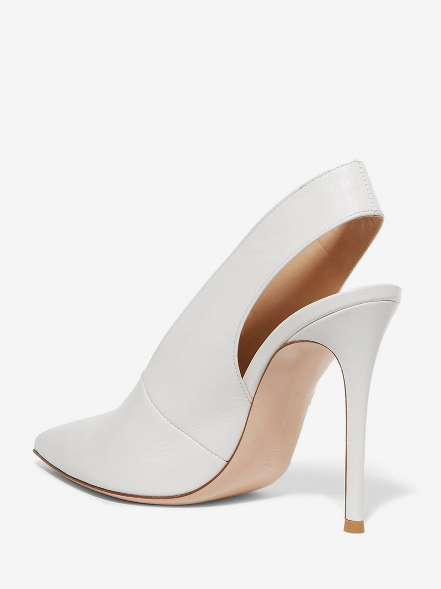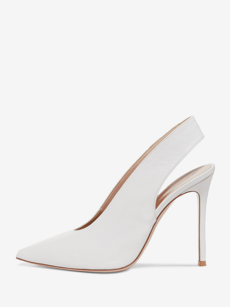 ホワイトハイヒール レディース ポインテッドトゥ スリングバックパンプス