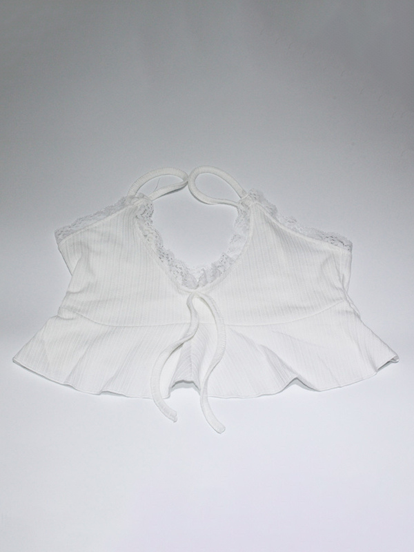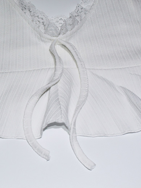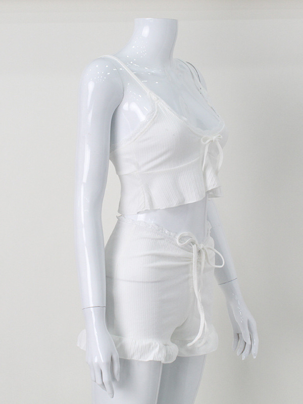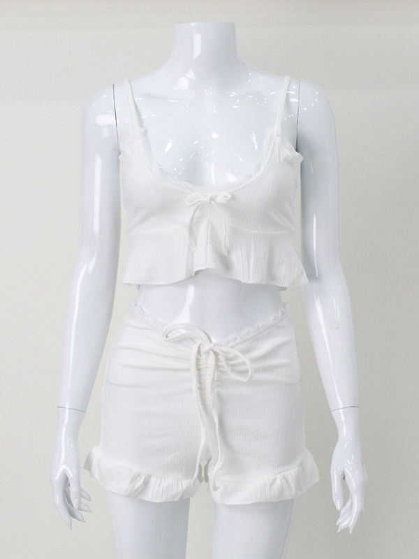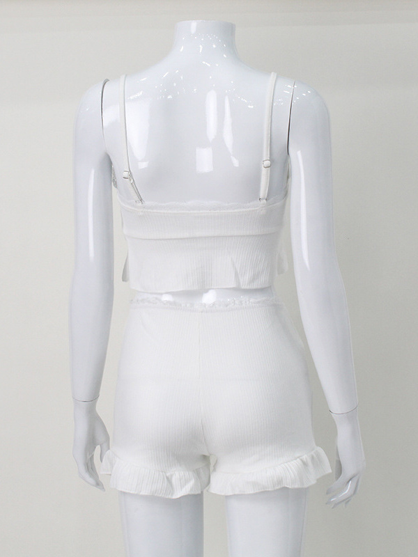 ホワイトレーストリム コケット 2ピースセット レディース - キャミソール ショート丈 ラウンジウェア - 夏のビーチカジュアル 2026