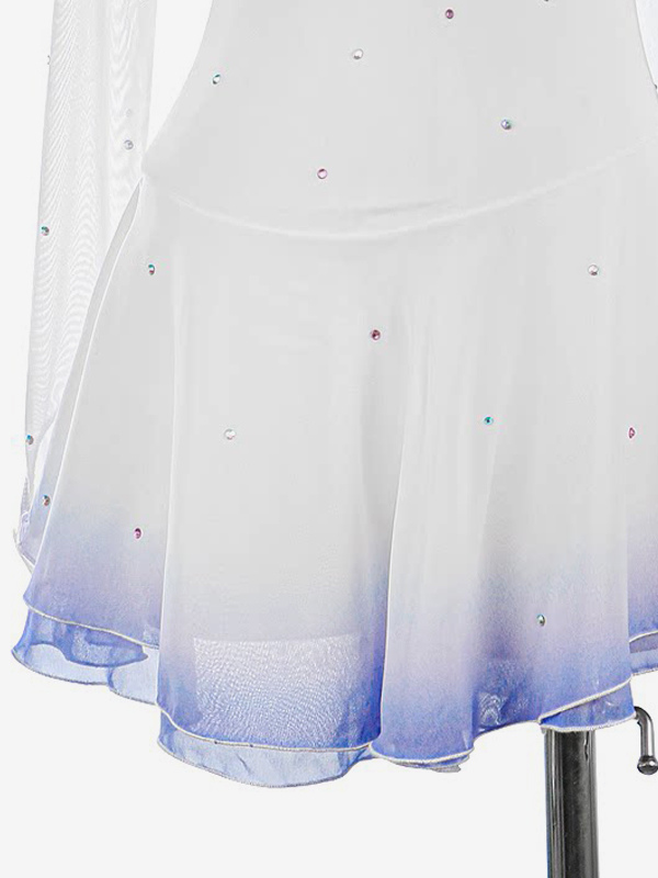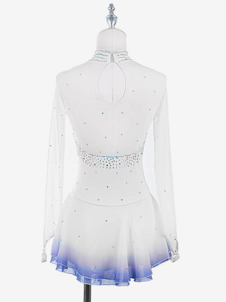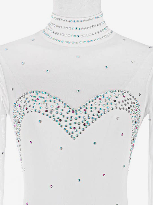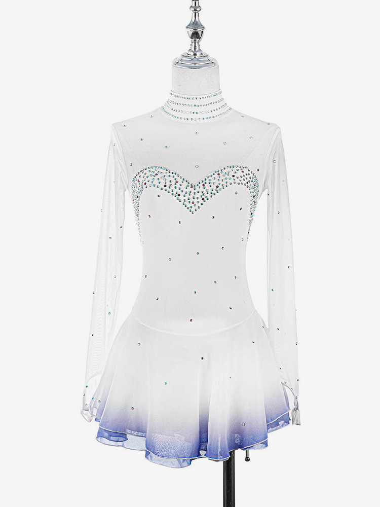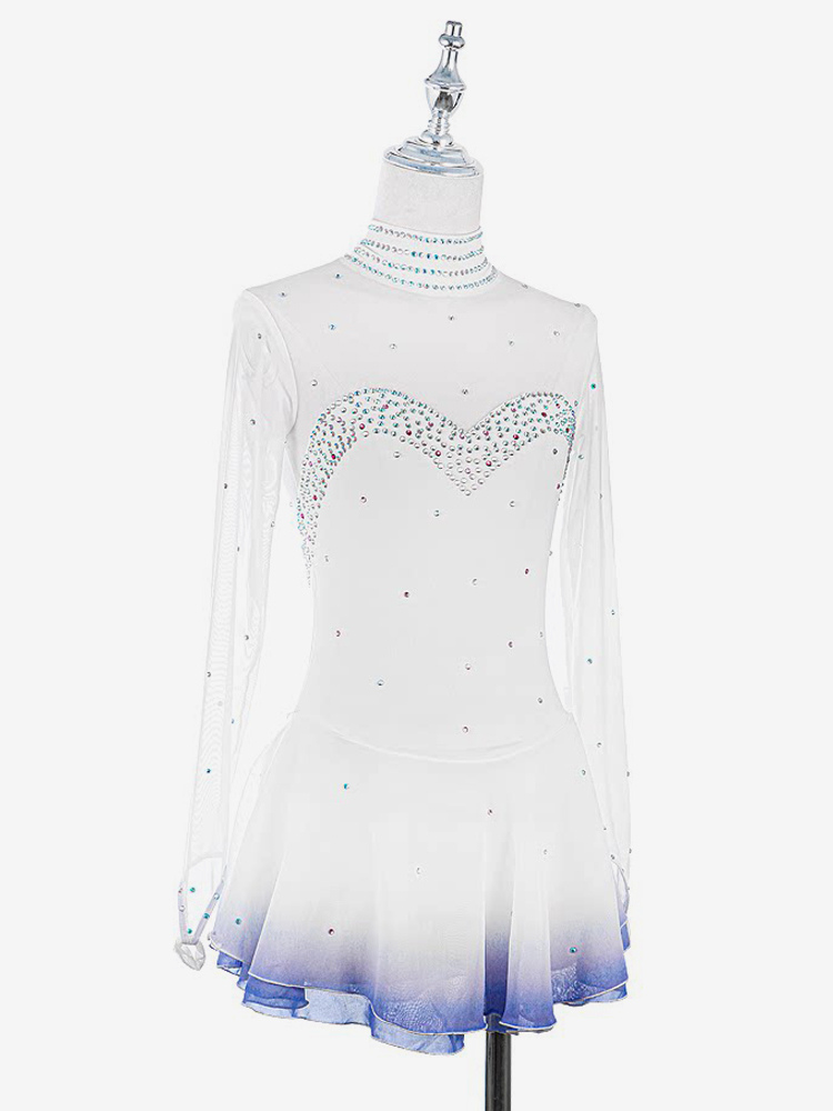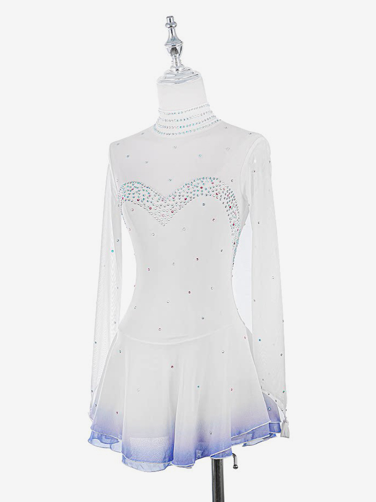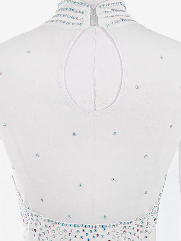 ホワイト スケートドレス スイートハート ビーズ ハイカラー 長袖 女性と女の子向け スケートドレス