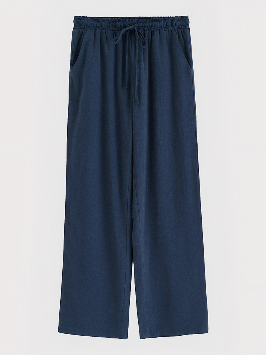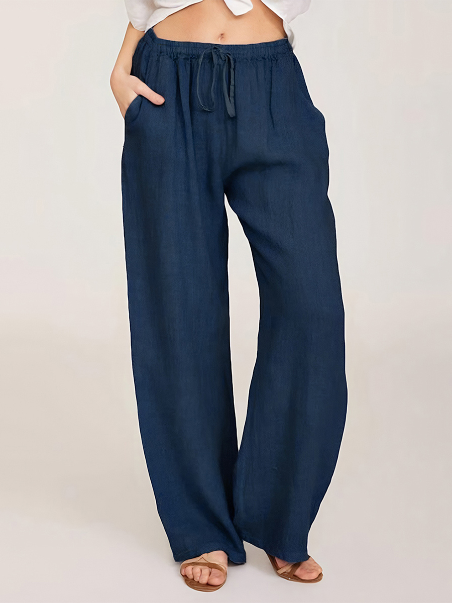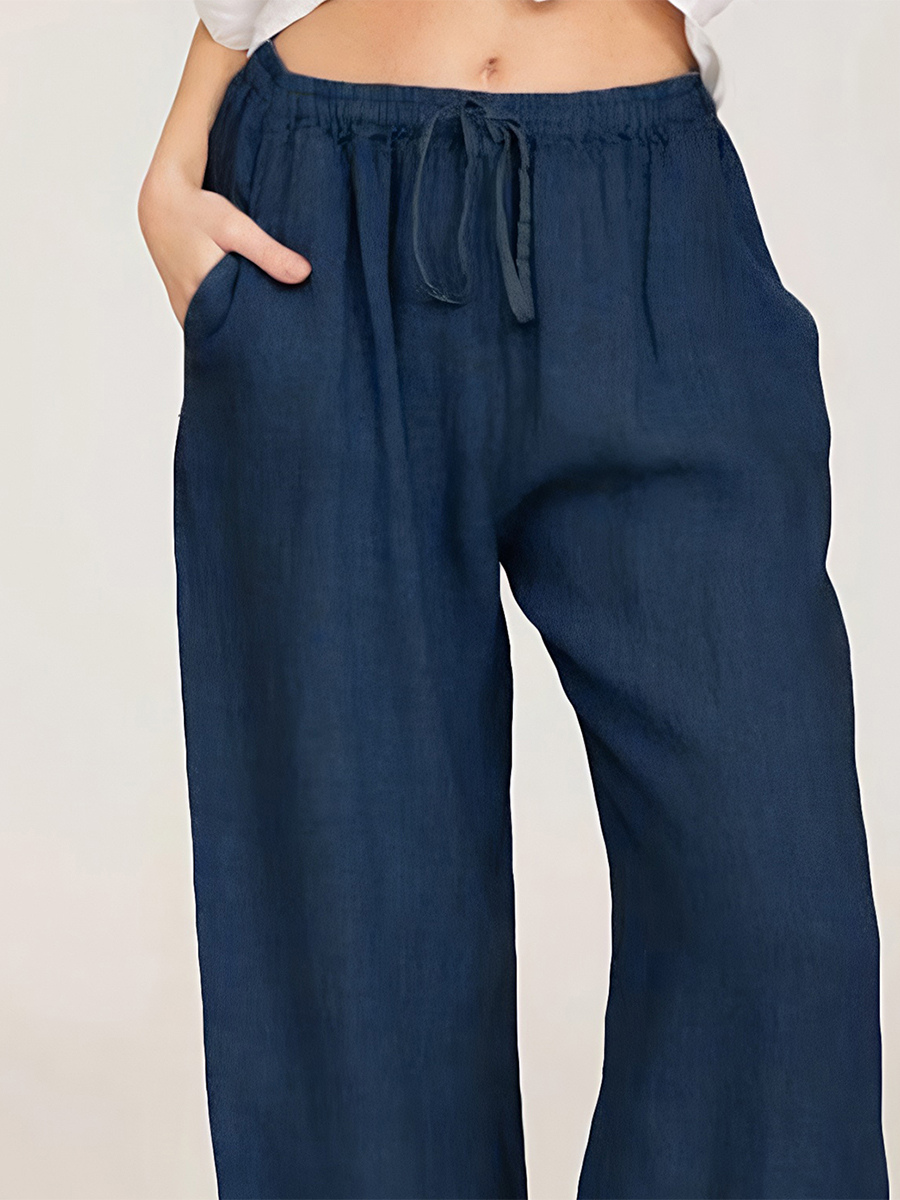 レディースワイドレッグパンツ - カジュアルでゆったりとしたドローストリング付きゴムウエストパンツ - 夏のビーチバケーション 2026