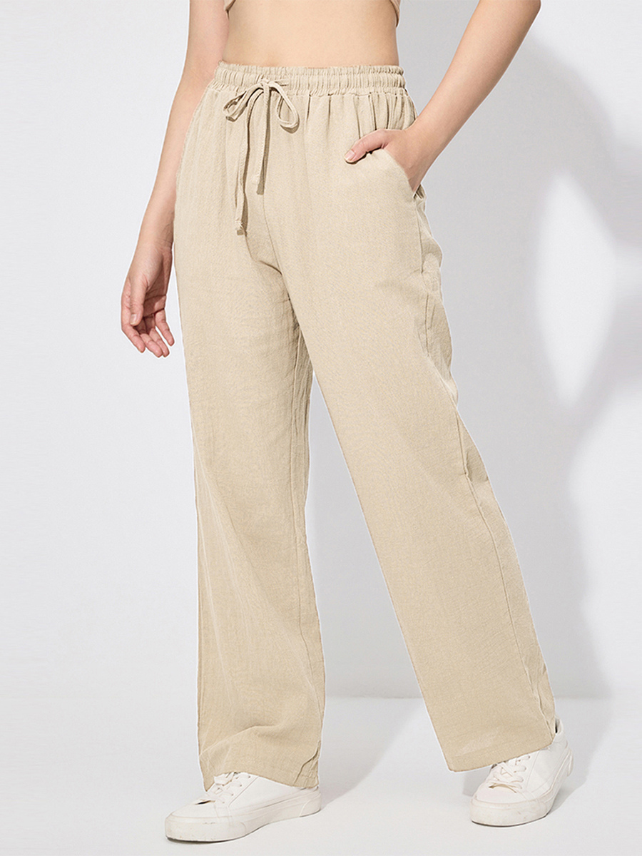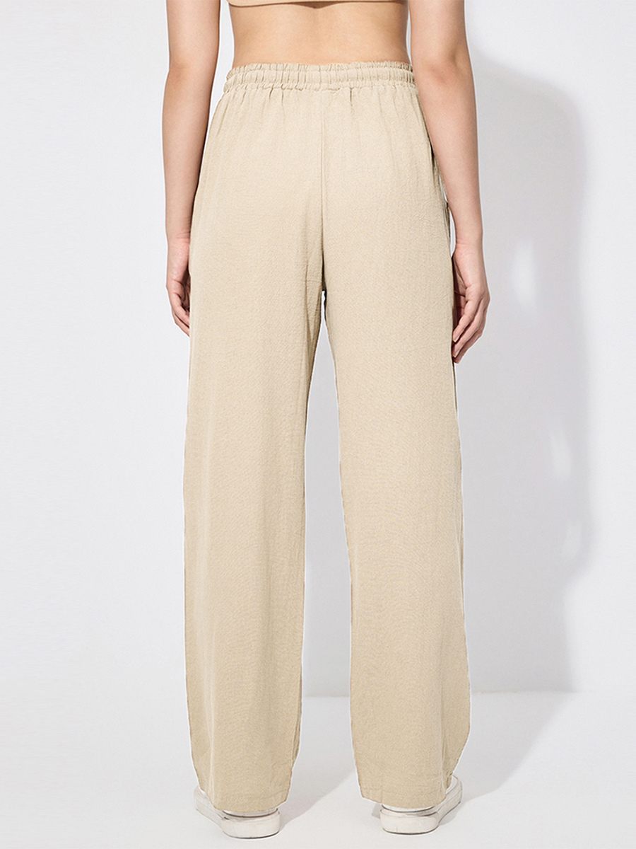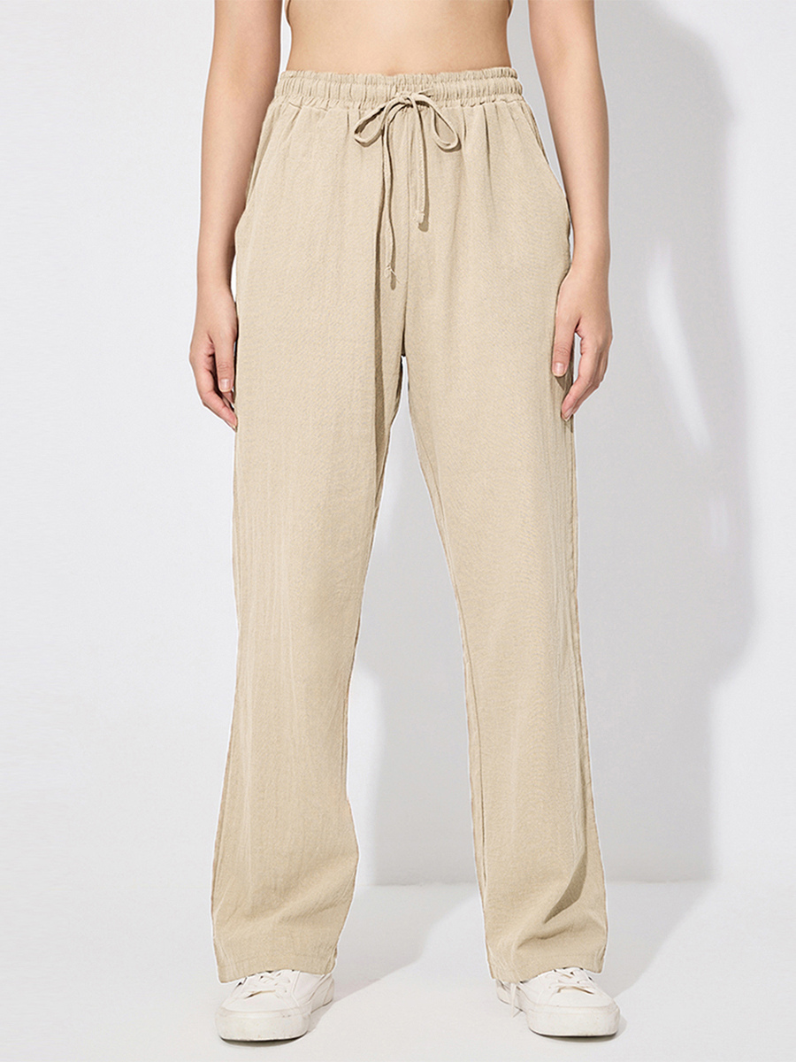 レディースワイドレッグパンツ - カジュアルでゆったりとしたドローストリング付きゴムウエストパンツ - 夏のビーチバケーション 2026