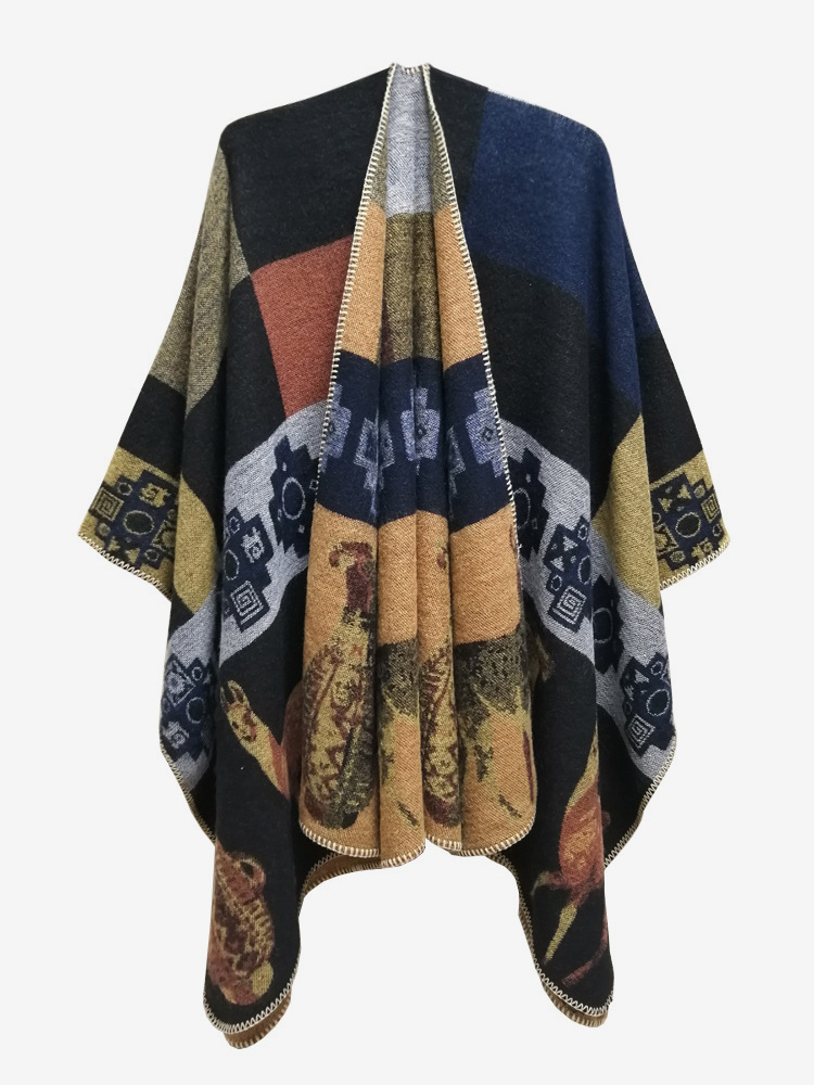 レディース ポンチョ チェック柄 Vネック レッド ケープ