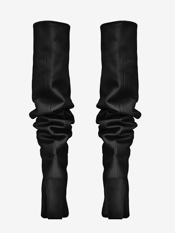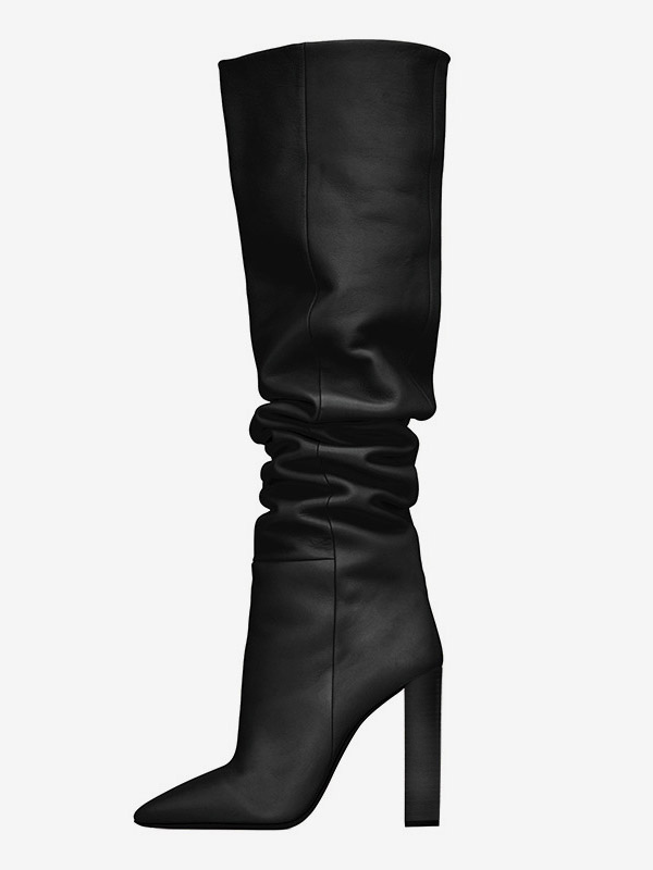 女性スラウチブーツ カーキ ポインテッドトゥ チャンキーヒール ニーハイブーツ
