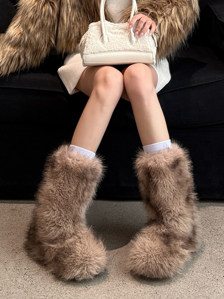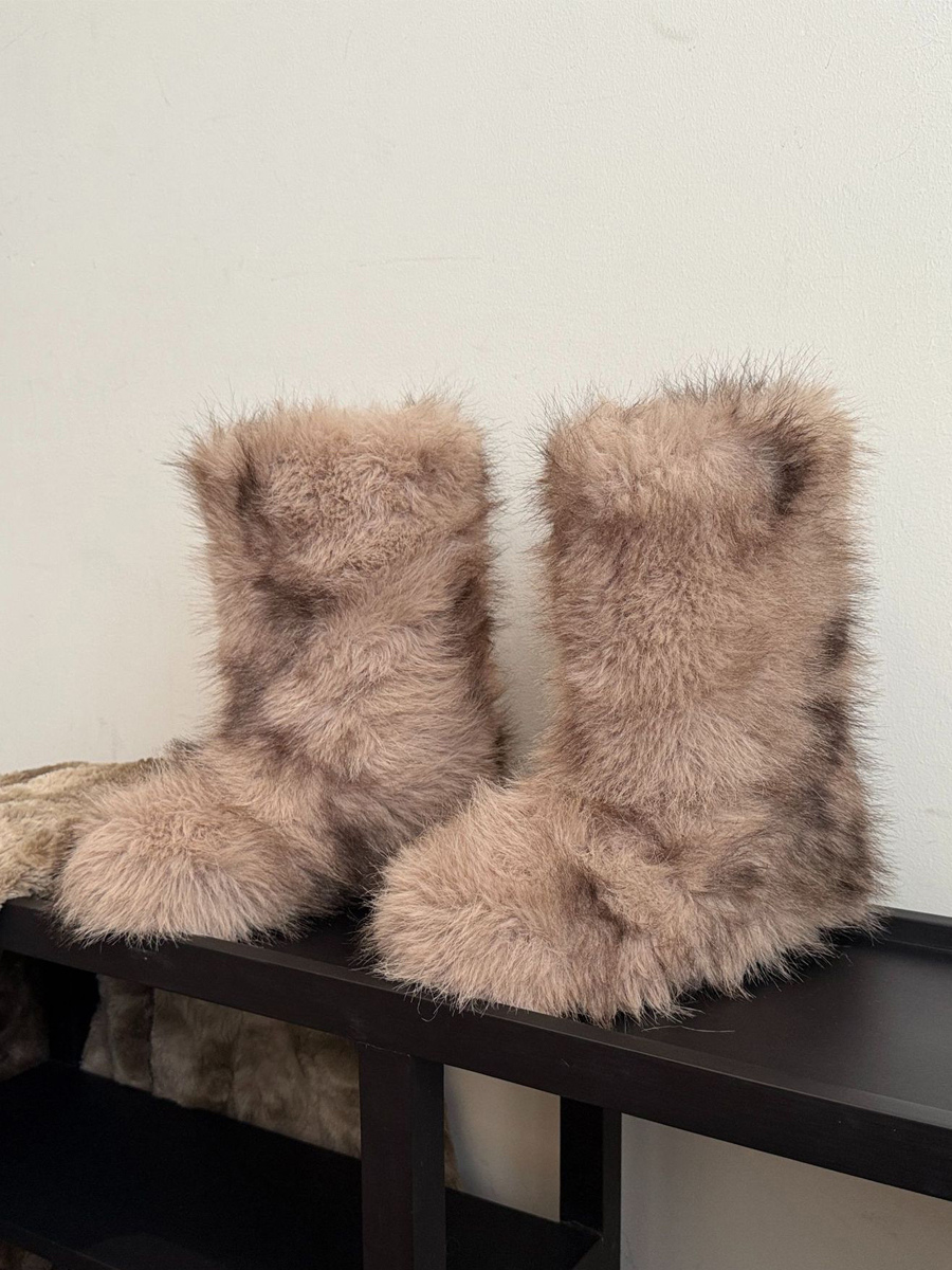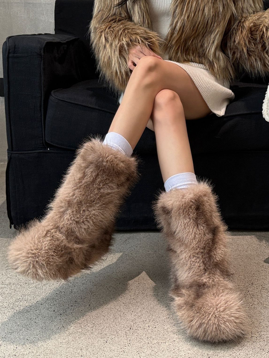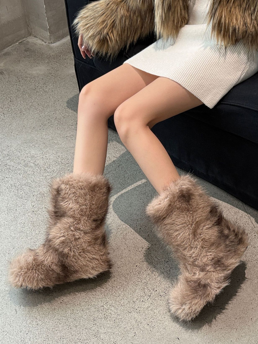 レディース アンクルブーツ フェイクファー ラウンドトゥ フラットブーティ