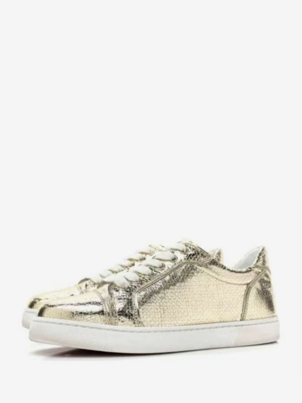 レディース カジュアルスニーカー ラウンドトゥ スネーク柄 レースアップ スケートシューズ