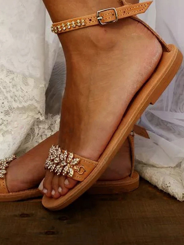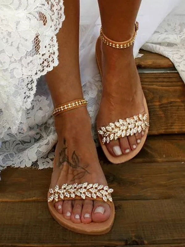 女性のブライダルシューズラインストーンPUレザーオープントゥフラットブライダルシューズ