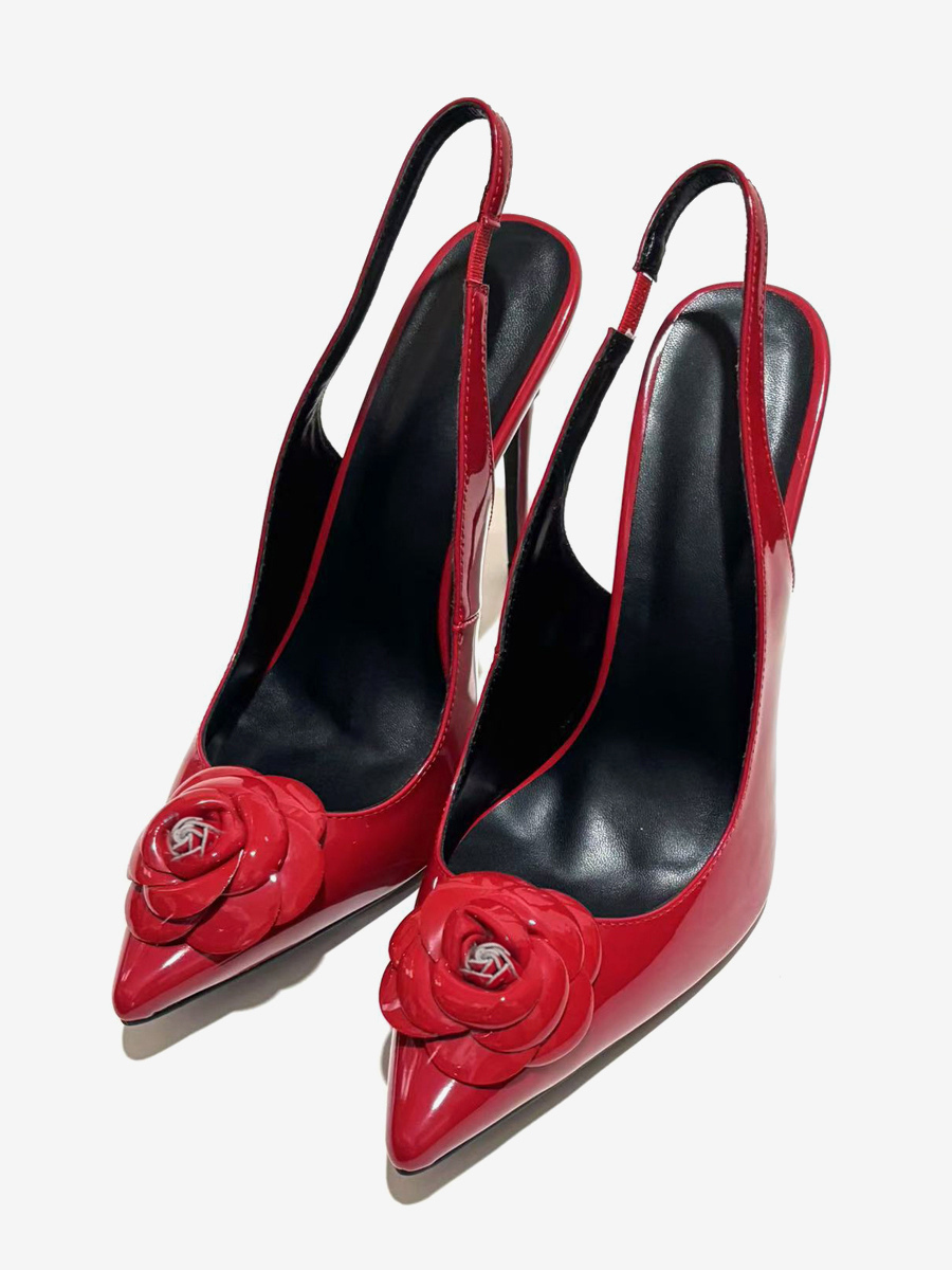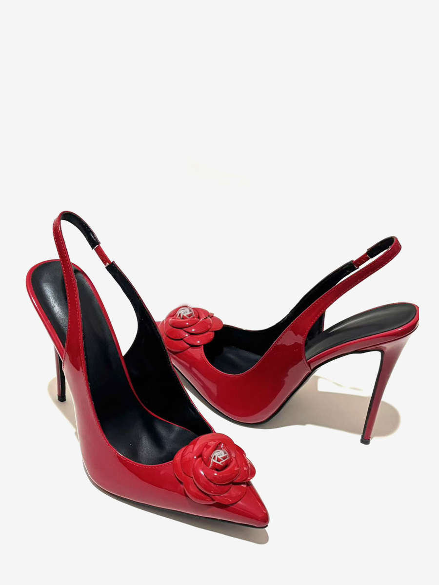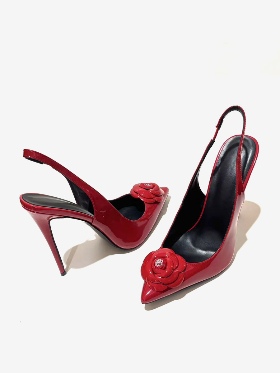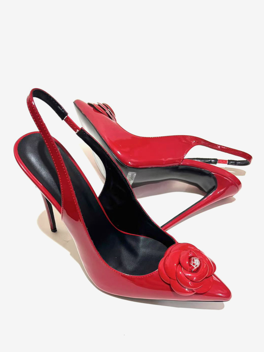 レディース ハイヒール ポインテッドトゥ フラワー スリングバック パンプス