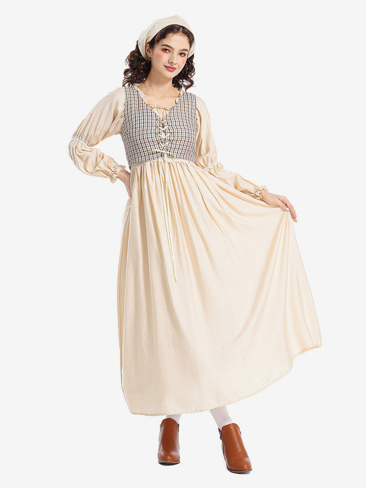Product Description: Step into the rustic charm of the Middle Ages with this Women's Medieval Renaissance Dress, a perfect Village Maid Cosplay Costume! This enchanting dress features a simple yet elegant design with a fitted bodice, laced-up front, and flowing skirt for an authentic peasant-girl aesthetic. Crafted from breathable linen or cotton blends, the dress includes delicate embroidery, puffed sleeves, and an apron-style overlay to capture the humble beauty of medieval village life. Ideal for Renaissance fairs, historical reenactments, fantasy LARP, or folk-themed events, this versatile piece pairs beautifully with lace caps, leather pouches, or rustic boots. Whether you're a tavern wench, a farmer’s daughter, or a fairy-tale heroine, this dress brings pastoral fantasy to life!