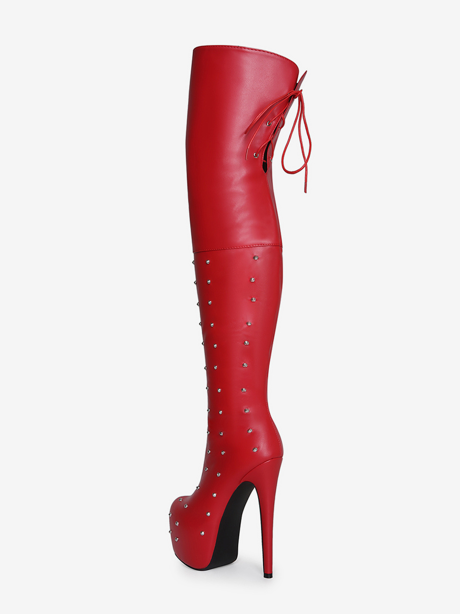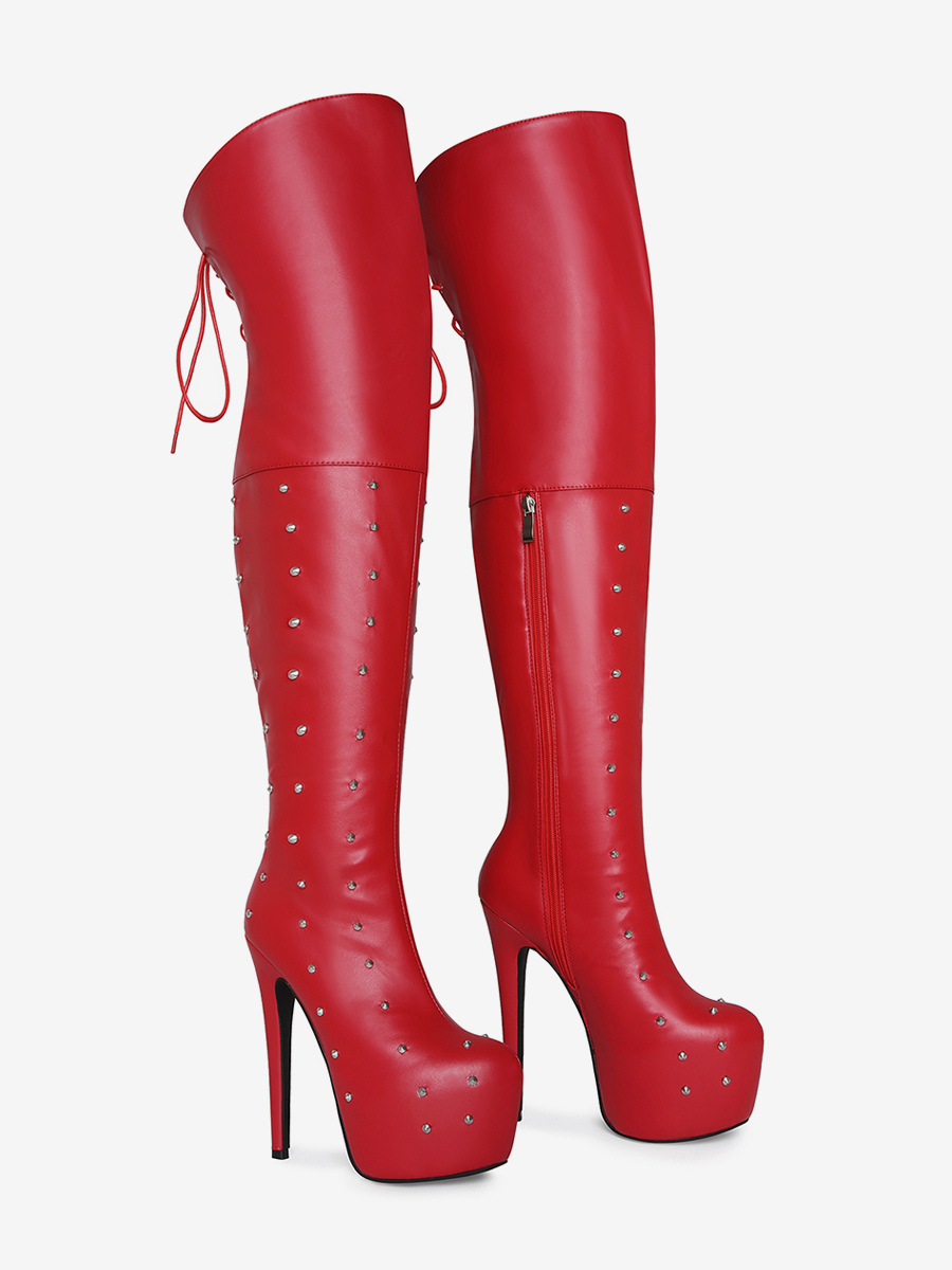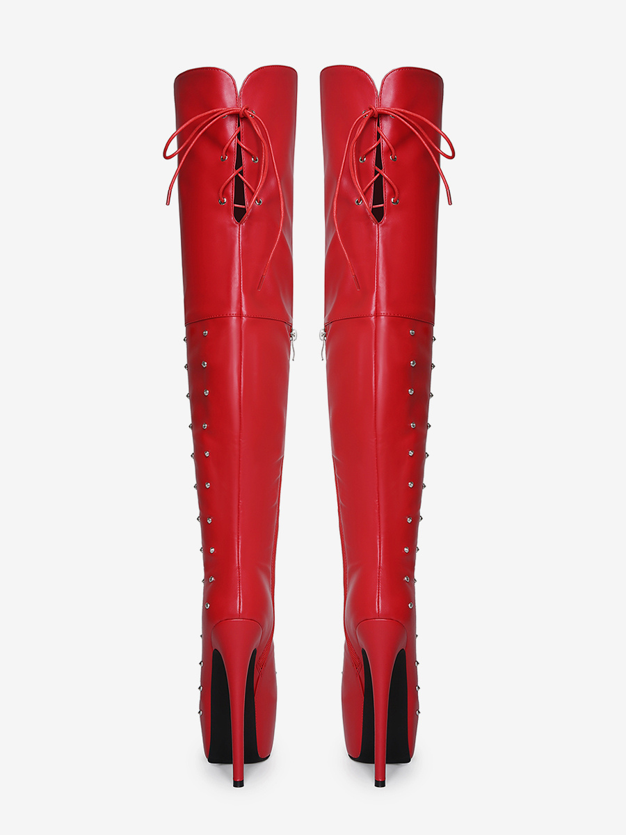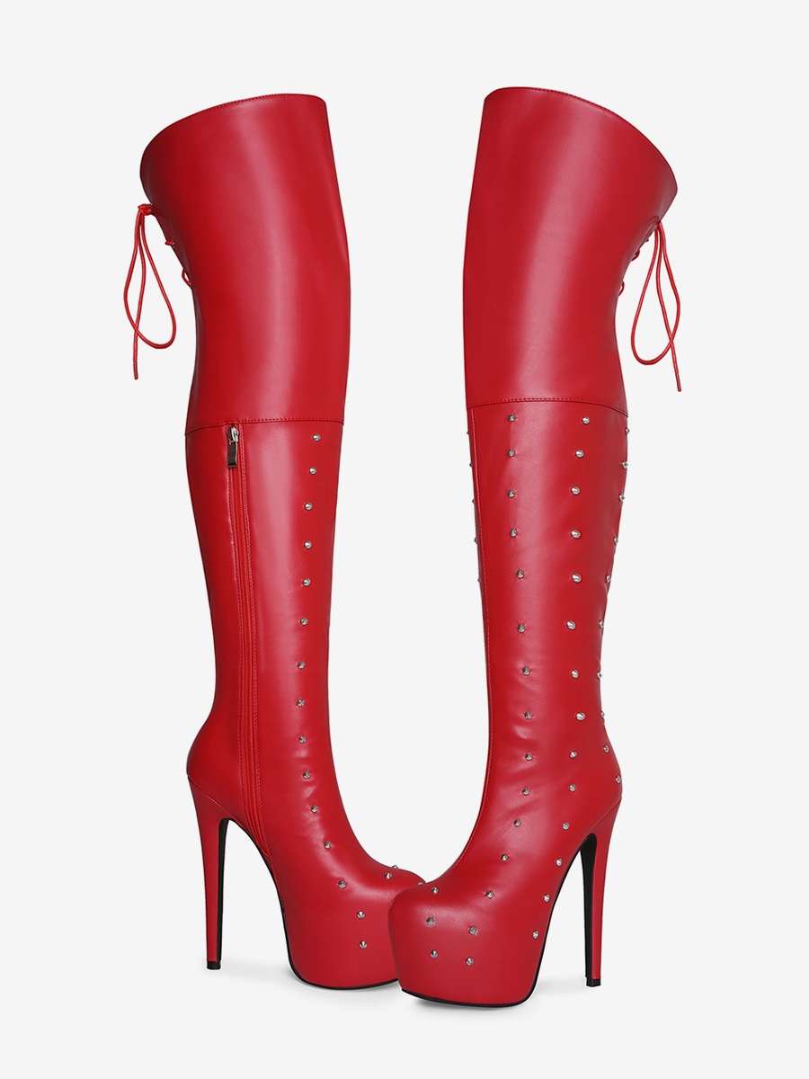 レディースセクシーブーツ プラットフォーム オープントゥ ビーズハイヒール オーバーニーブーツ