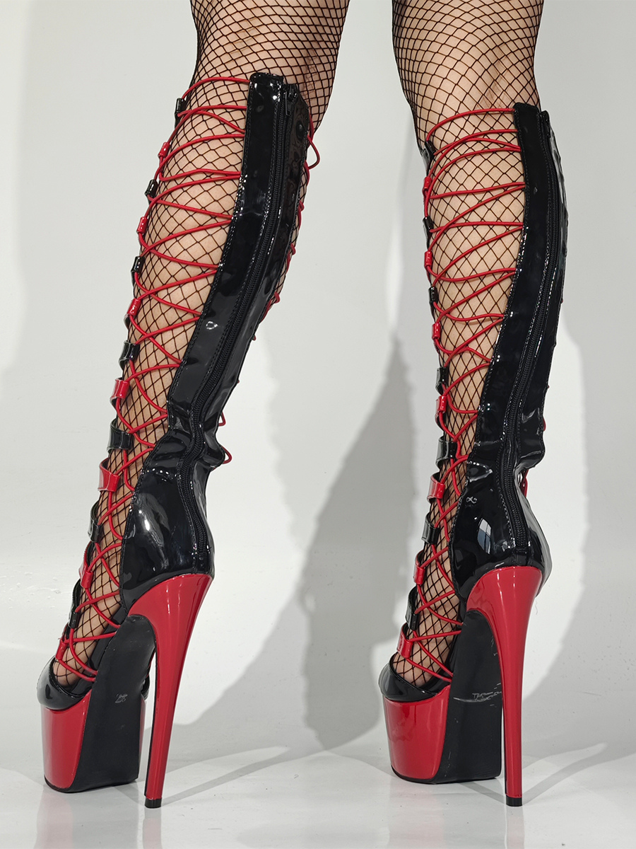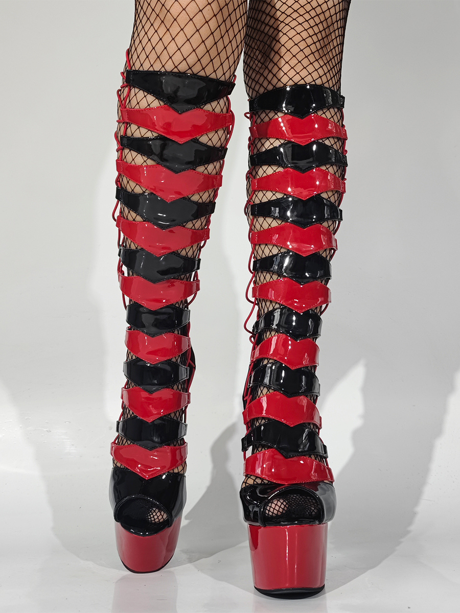 レディースセクシーブーツ プラットフォーム オープントゥ レースアップ サンダルブーツ
