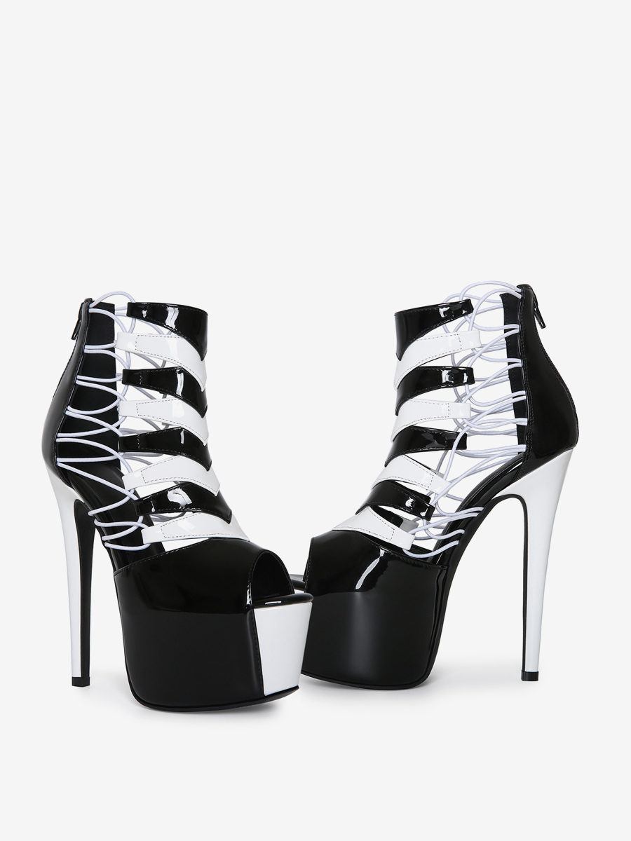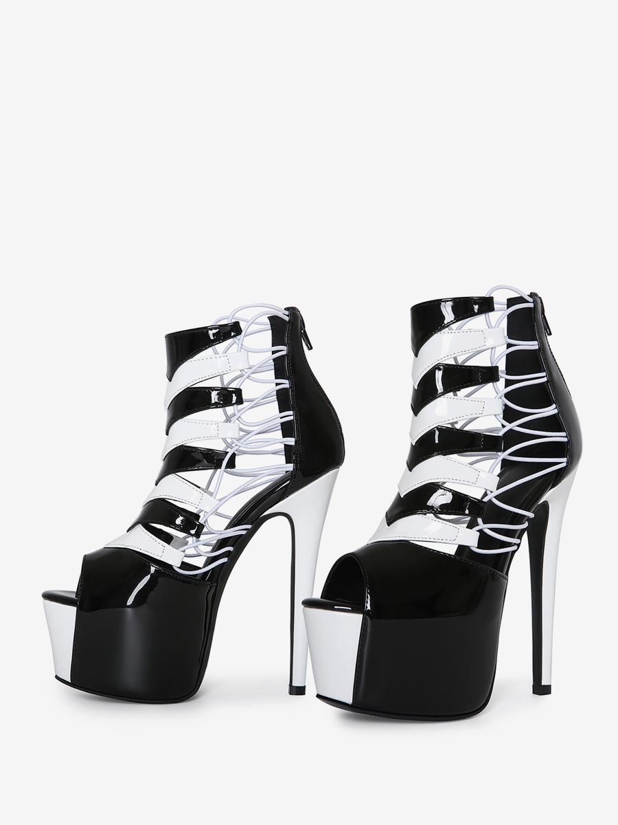 レディースセクシーサンダル プラットフォーム ピープトゥ カットアウト ハイヒール ブーティ