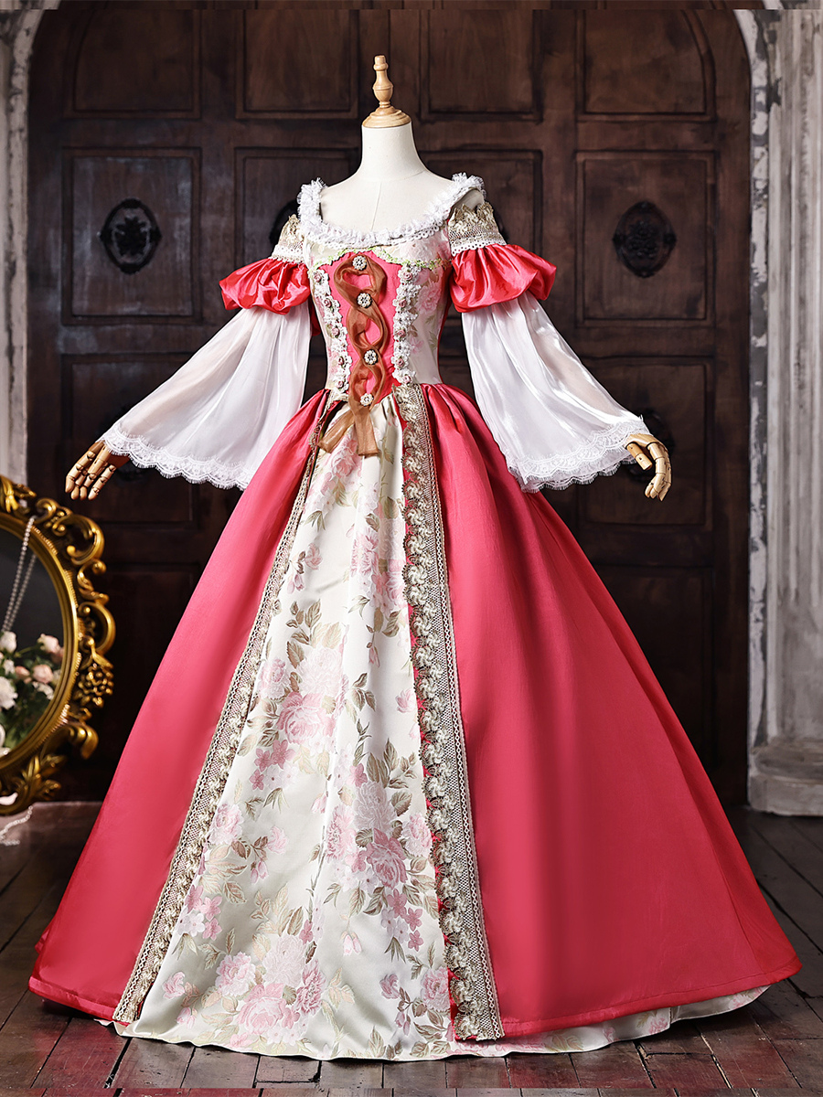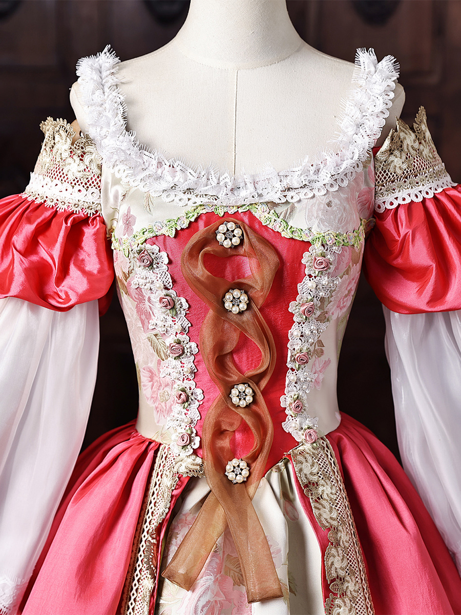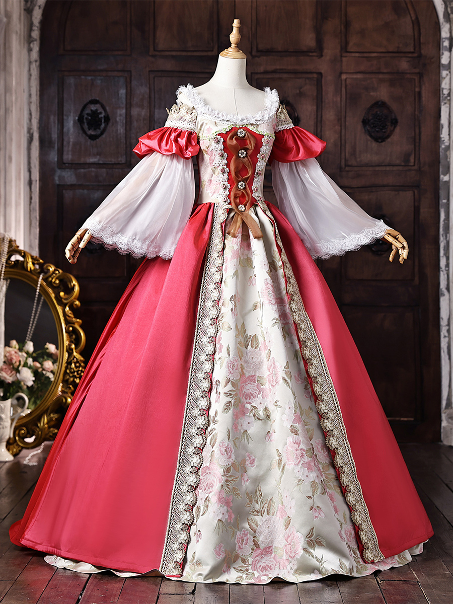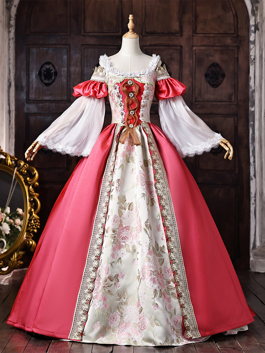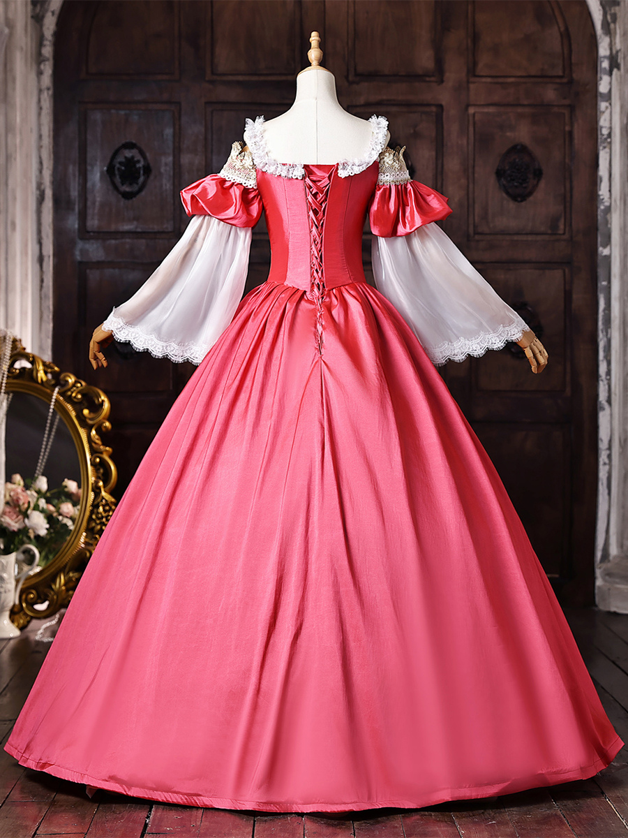 レディース ヴィクトリアン ドレス オフショルダー 長袖 レーストリム ボールガウン ヴィンテージドレス
