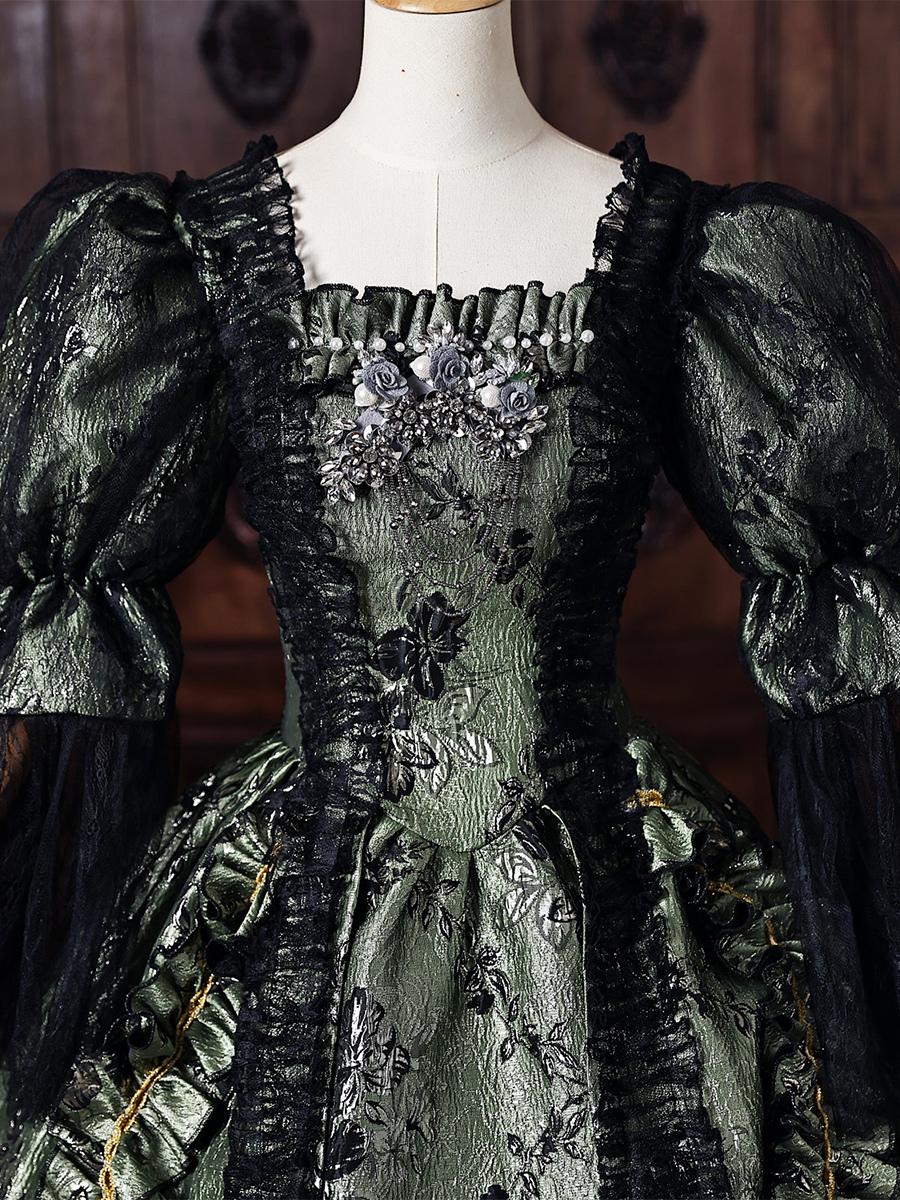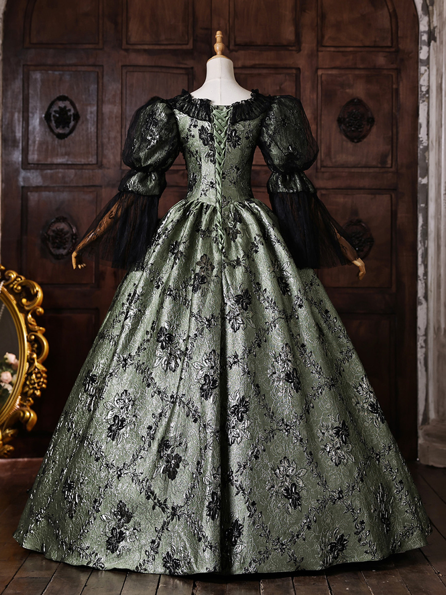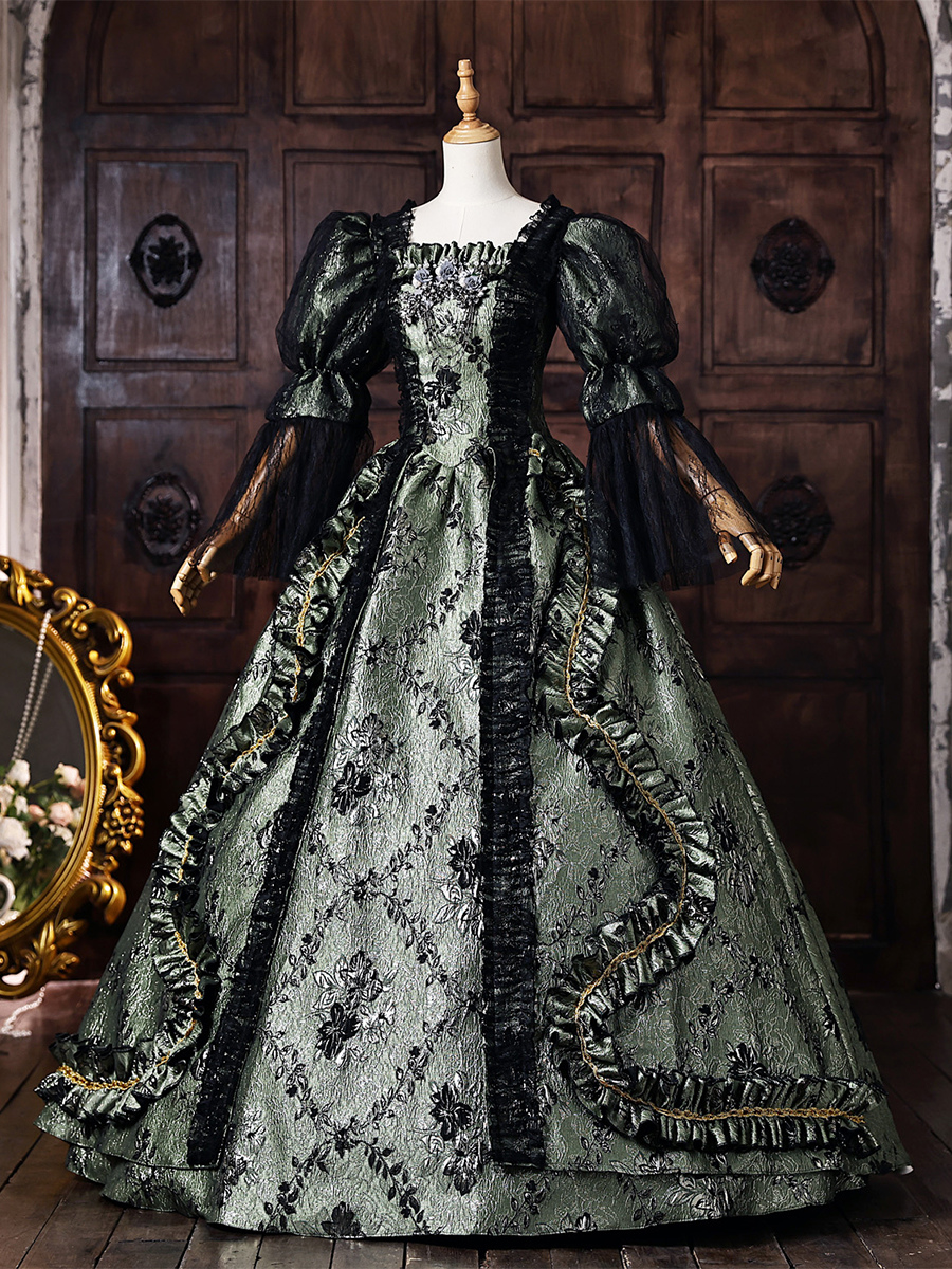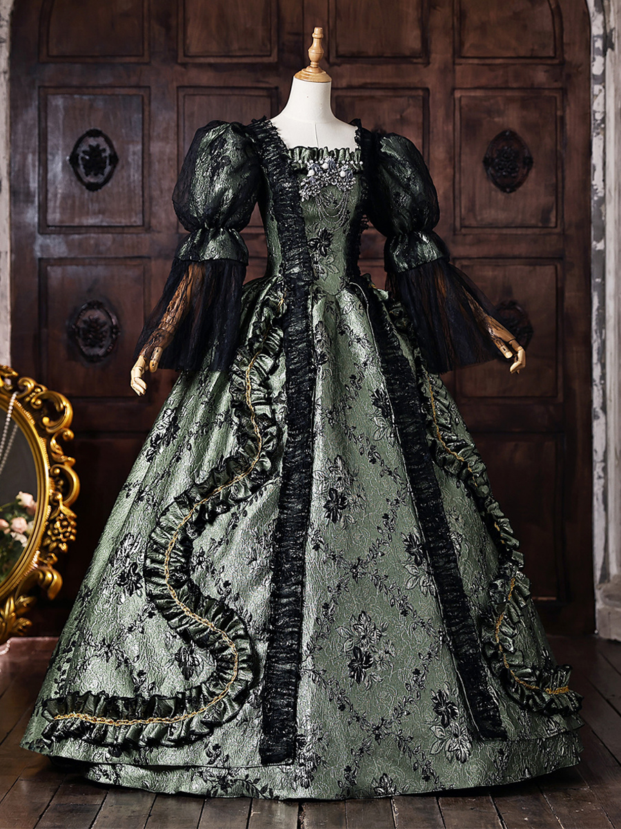 レディース ヴィクトリアン ロココ ドレス パフスリーブ レースフリル トリム ボールガウン 歴史的ドレス