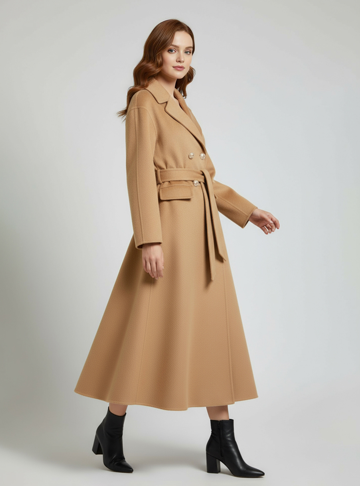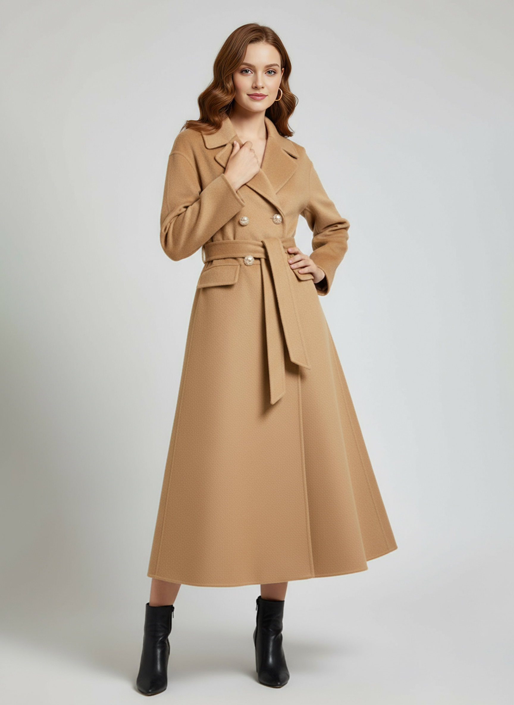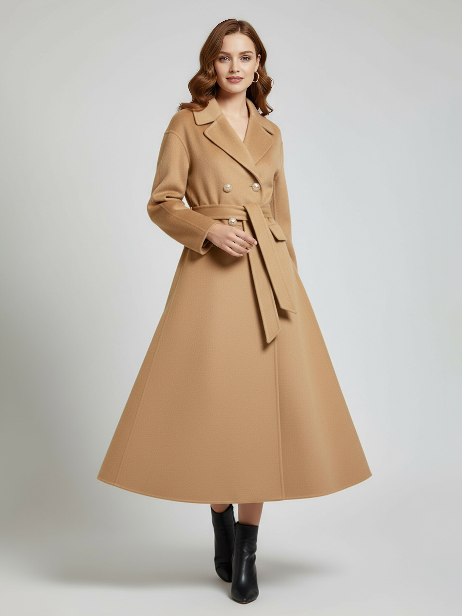 ウールカシミア混紡ヴィンテージAラインコート(クラシックラペル&ベルト付き、レディース2025年モデル)