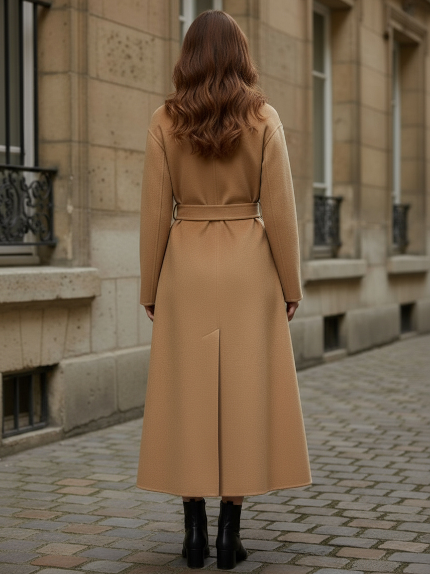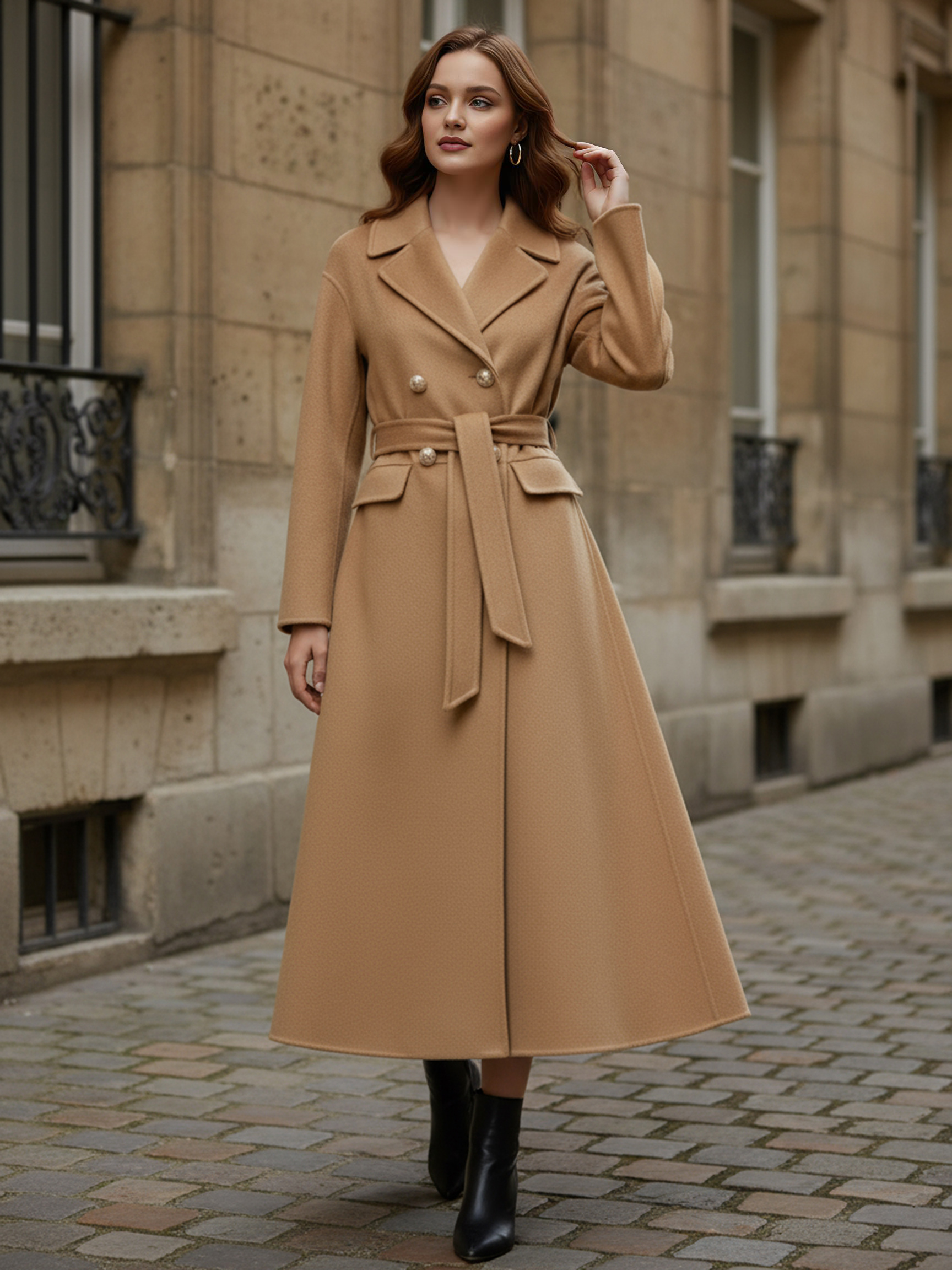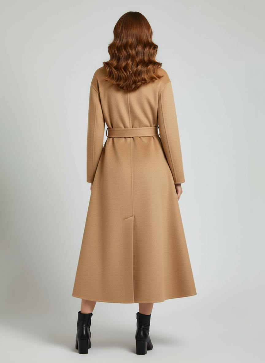 ウールカシミア混紡ヴィンテージAラインコート(クラシックラペル&ベルト付き、レディース2025年モデル)