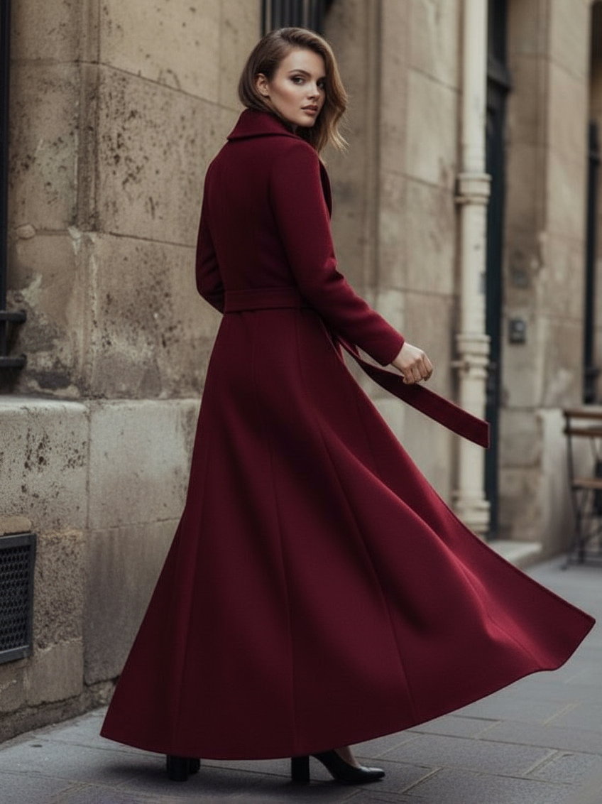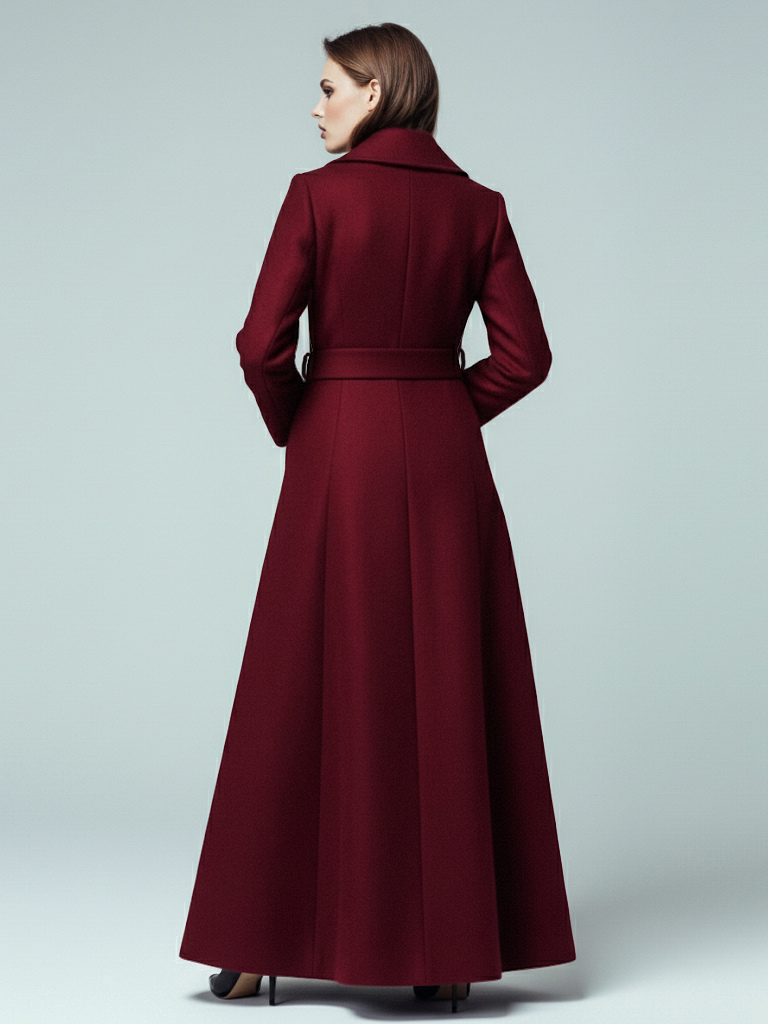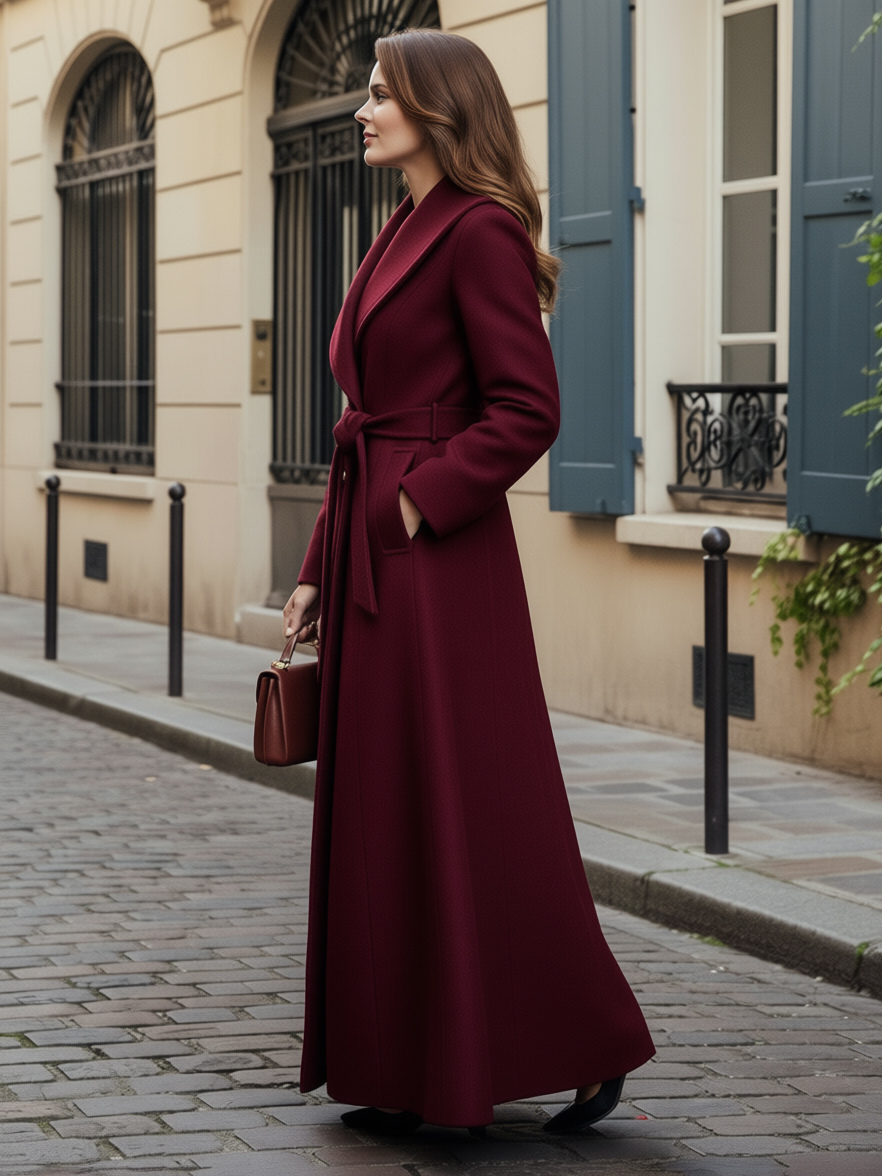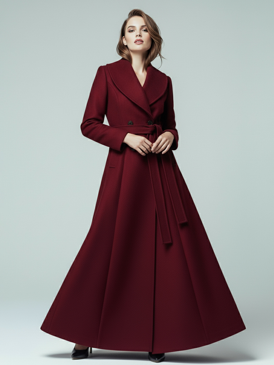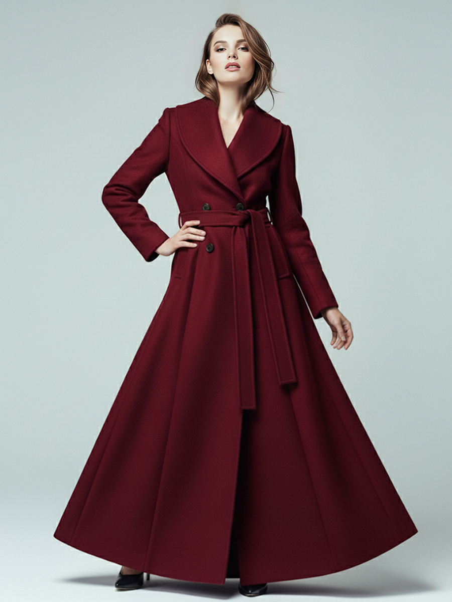 ショールカラーとダブルブレストのウール製ベルト付きマキシコート(レディース 2025年)