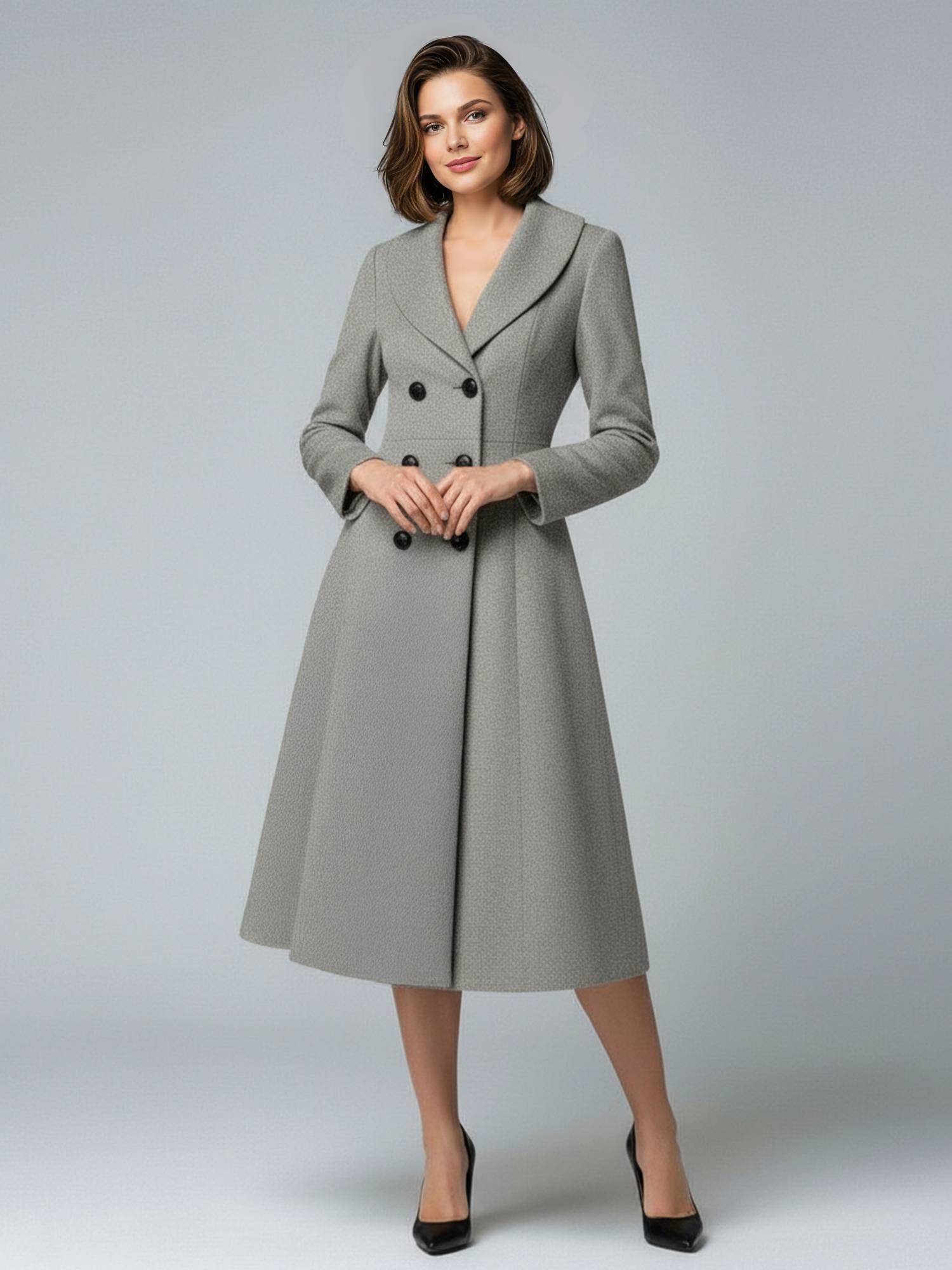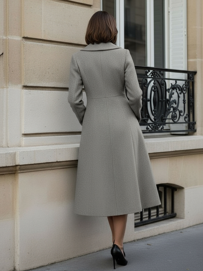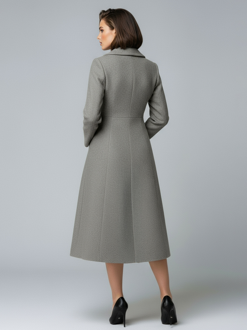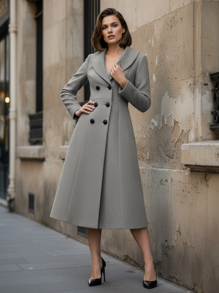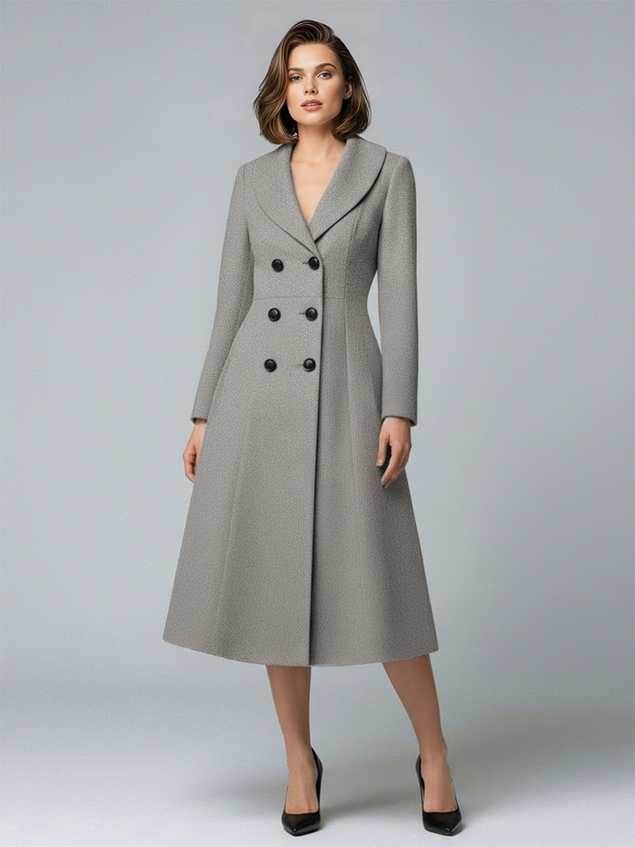 ウールダブルブレストAラインミディコート(ショールカラー、レディース)2025年モデル