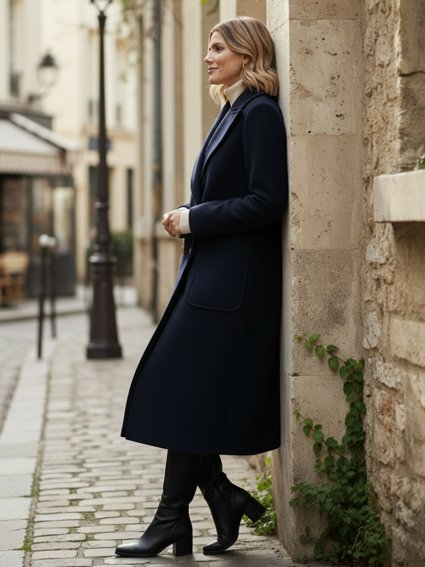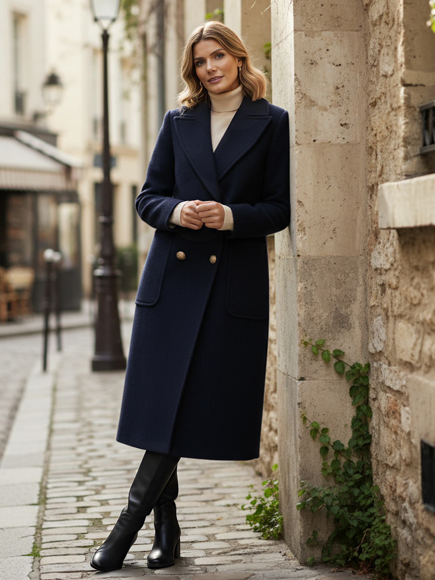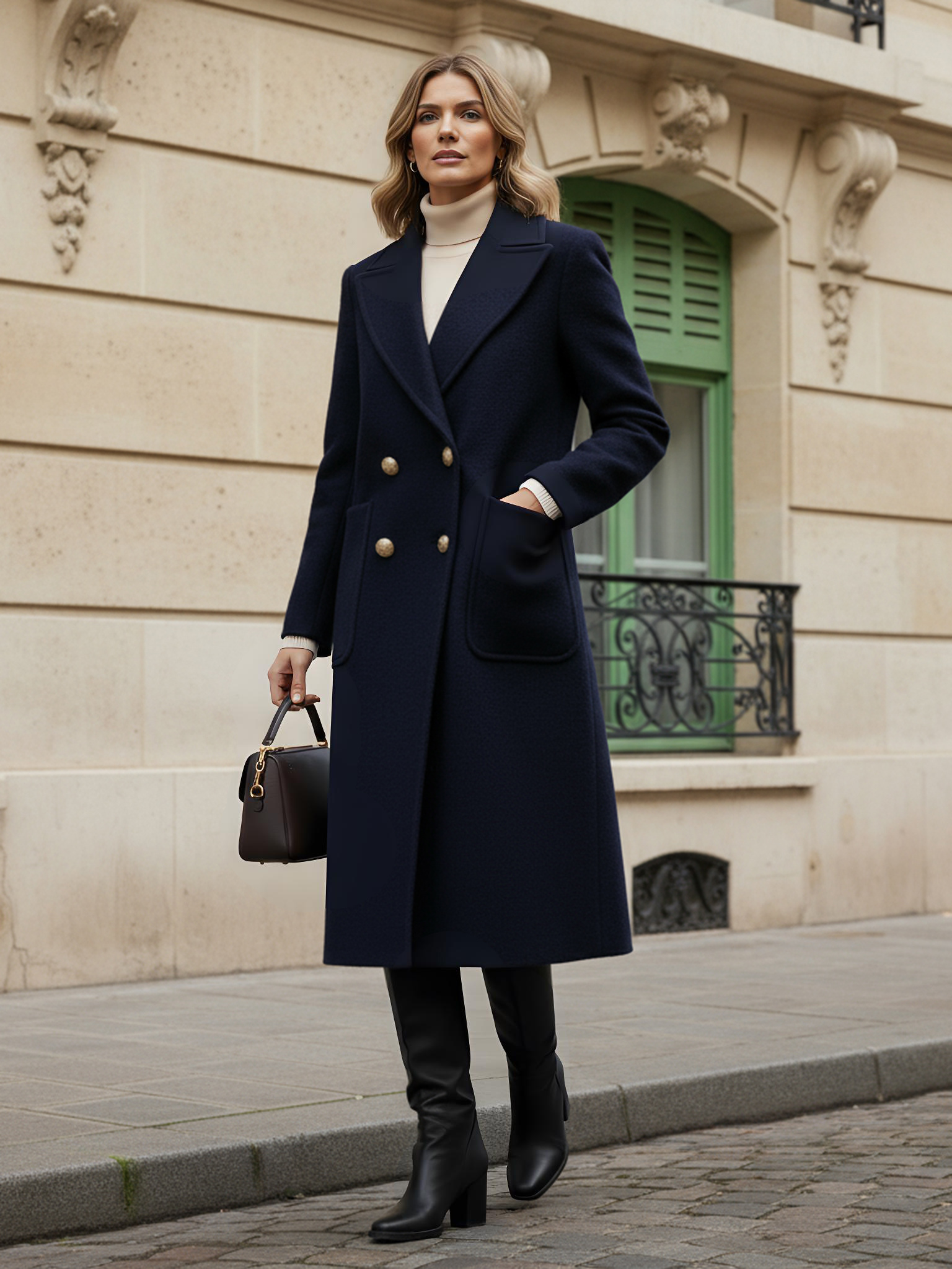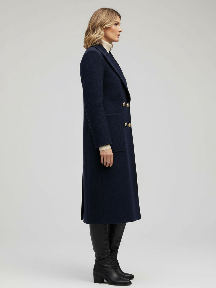 ゴールドトーンボタン付きウールダブルブレストミディコート(レディース)2025年モデル