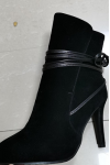 レビュー: ショート ブーティ アンクル ブラック スエード ポインテッド トゥ ストラップ レディース