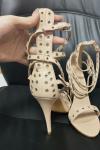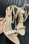 レビュー: アプリコットハイヒールサンダル スエードオープントゥ クリスクロスカットアウト アンクルストラップサンダルシューズ