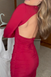 レビュー: タイトワンピース レッド 無地 キャバドレス バックレス レディースファッション シック&モダン 長袖 プランジングネック ボディコンワンピース レディースワンピース