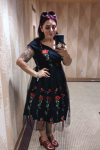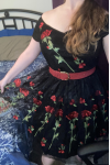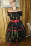レビュー: ブラックヴィンテージドレス 2026 1950sオフショルダー フラワー刺繍レッド チュールホームカミングドレス
