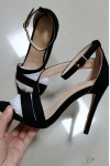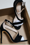 レビュー: ハイーヒール サンダル レディースシューズ ブラック オープントゥ ストラピー アンクルストラップ サンダルシューズ