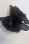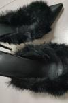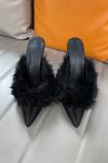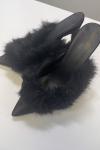 レビュー: ブラックハイヒール フェイクフェザー ポインテッドトゥ スティレットヒール ミュール