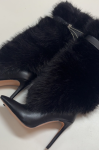 レビュー: ブラック ニーハイブーツ フェイクファー 尖ったつま先 チェーンディテール 膝丈ブーツ