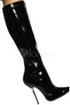 レビュー: ブラックニーハイブーツ女性のセクシーな靴ポインテッドトゥブライトレザーハイヒールブーツ