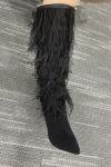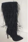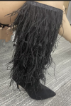 レビュー: ブラックニーハイブーツ レディース フェザーディテール スティレットヒール ニーレングスブーツ