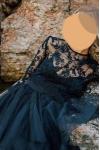 レビュー: ブラック ロイヤル ウェディングドレス プリンセスシルエット ロングスリーブ カットアウト チュール トレーン付き ブライダルドレス