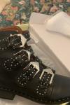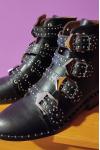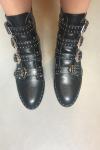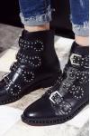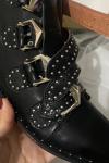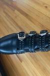 レビュー: ブラック オートバイ ブーツ 牛革 スタッズ バックル ラウンド トゥ アンクル ブーツ