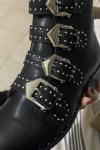 レビュー: ブラック オートバイ ブーツ 牛革 スタッズ バックル ラウンド トゥ アンクル ブーツ