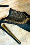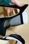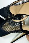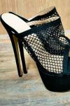 レビュー: ブラック セクシー ハイヒール ネット プラットフォーム ピープトウ スティレット スカイ ハイ サンダル スリッパ