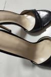 レビュー: 黒のセクシーなミュールハイヒールオープントゥスネーク柄スティレットヒールサンダルスライド