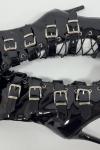 レビュー: 黒のセクシーなサイハイブーツピープトウバックルデザインのレースアップハイヒールオーバーザニーブーツ