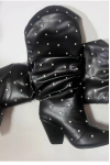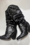 レビュー: ブラック ワイド カーフブーツ レディース ポインテッドトゥ ビーズ ウェッジヒール スラウチブーツ