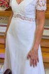 レビュー: ボヘミアンウェディングドレス アイボリー レース Aライン スイープウエスト バックレス 半袖 Vネック ブライダルドレス
