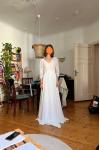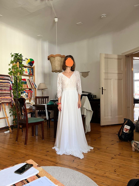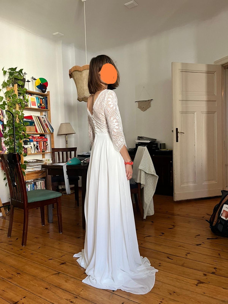 レビュー: ボヘミアン ウェディングドレス レース カットアウト Aライン トレーン付き バックレス 3/4 丈スリーブ Vネック アイボリー