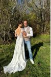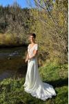 レビュー: ボヘミアンウェディングドレス サテン生地 レース Aライン スイープ ウエスト上げ バックレス 半袖 Vネック アイボリー