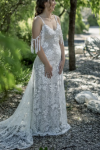 レビュー: 自由奔放に生きるウェディングドレス トレーン付き アイボリー Aライン ノースリーブ Vネック バックレス レース ブライダルドレス 無料カスタマイズ