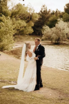 レビュー: ボーホーウェディングドレス 2026 Aライン 深いvネック ストラップ レース 半袖ブライダルガウン ビーチウェデイングドレススウィープトレーン付き
