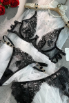 レビュー: ブラジャー パンティ セット 刺繍入りメタルディテール 3ピース セクシーランジェリー ガーターベルト付き