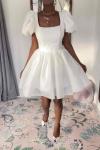 レビュー: ブライダルミニドレス ショートウェディングドレス デザインネックライン ショートスリーブ ショートショートブライダルガウン