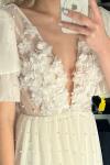 レビュー: ブライダルミニドレス ショートウェディングドレス Vネック 半袖 Aライン ヴィンテージ ショートブライダルドレス