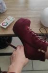 レビュー: ショートブーツ アーモンドトゥ ブーティ シック&モダン レディースブーツ バーガンディー ピンヒール 14cm グロメット シューズ レディース靴 バーガンディー