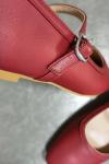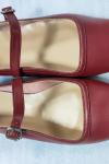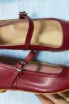 レビュー: バーガンディ メリージェーン フラット スクエアトゥ バックルディテール ヴィンテージ バレリーナ フラット