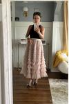 レビュー: ケーキスカート マルチレイヤー 伸縮性ウエスト 春秋 デイリーカジュアルスカート